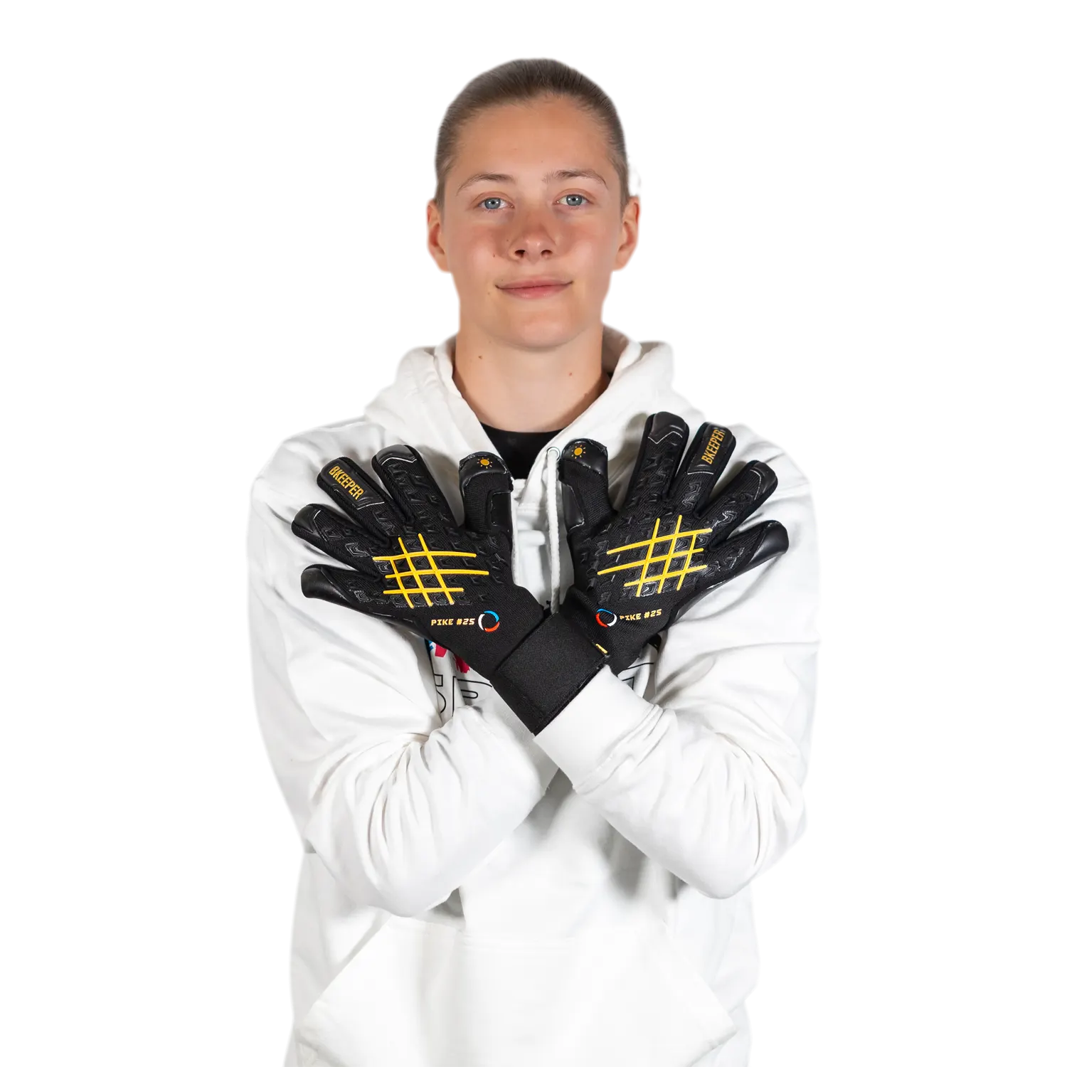 The PIKE #25 BLACK goalkeeper gloves are designed to offer optimal performance in terms of grip, protection, and comfort. Thanks to their 4 mm contact foam, they ensure exceptional grip and incredible resistance on all types of playing surfaces.